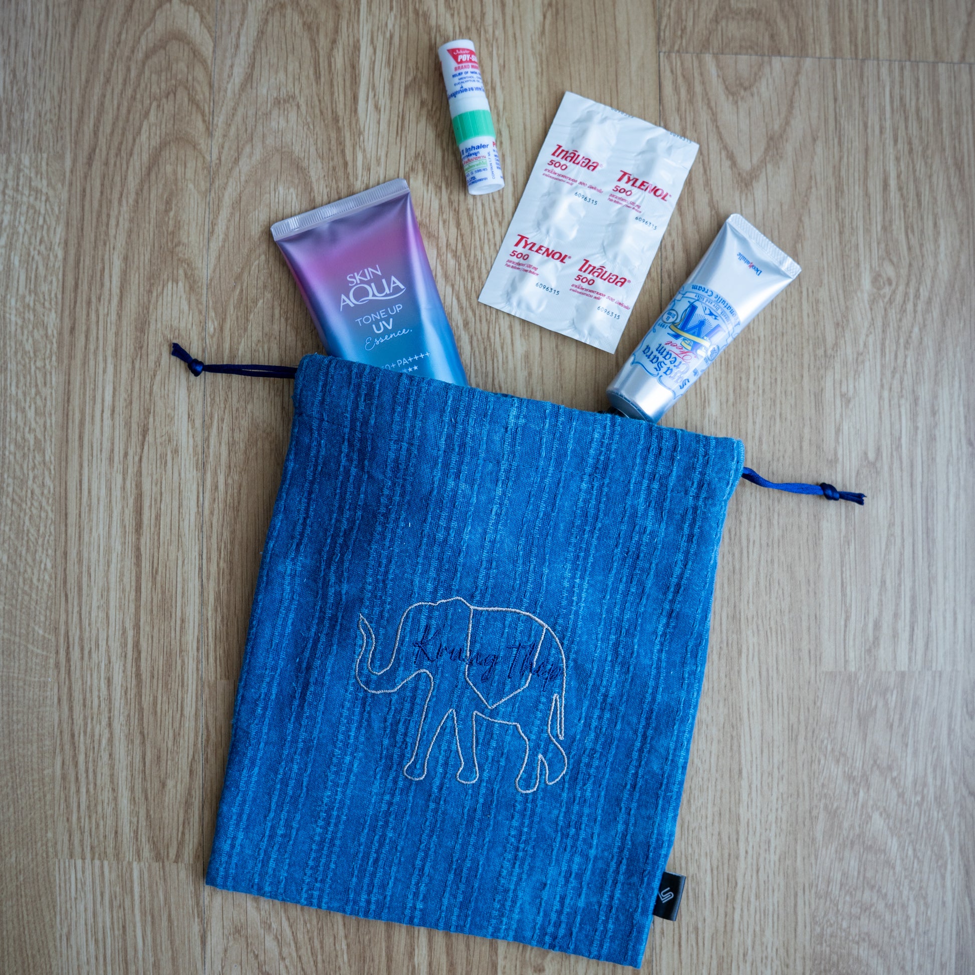 Traditional Thai Dyed × Drawstring Pouch